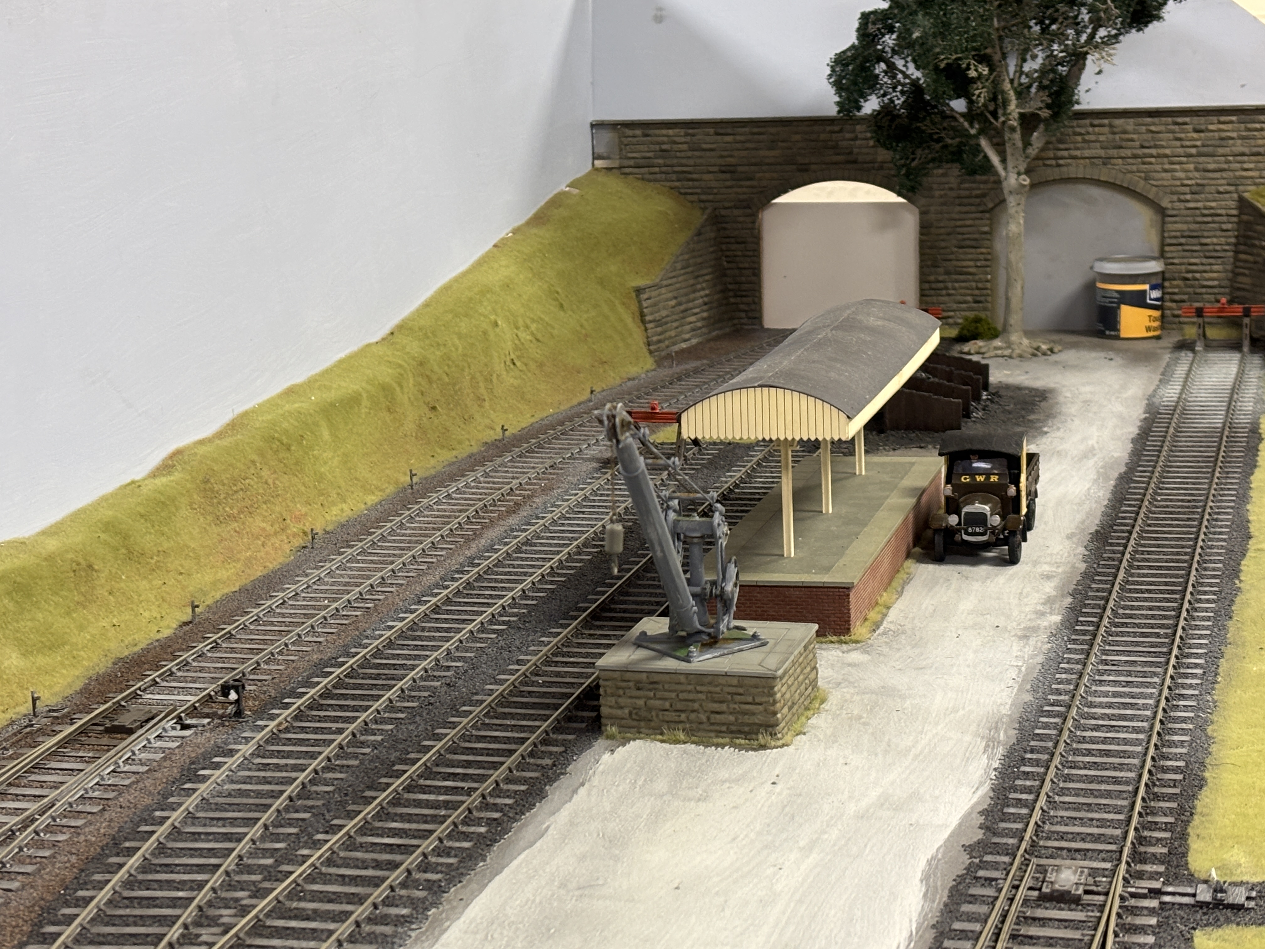 Broadwater Junction is a romantic fictional location. It represents a main line running close to the sea somewhere in the Western Region, probably in Wales. It is analogue control and is usually up and running in the clubroom for members to run their trains.